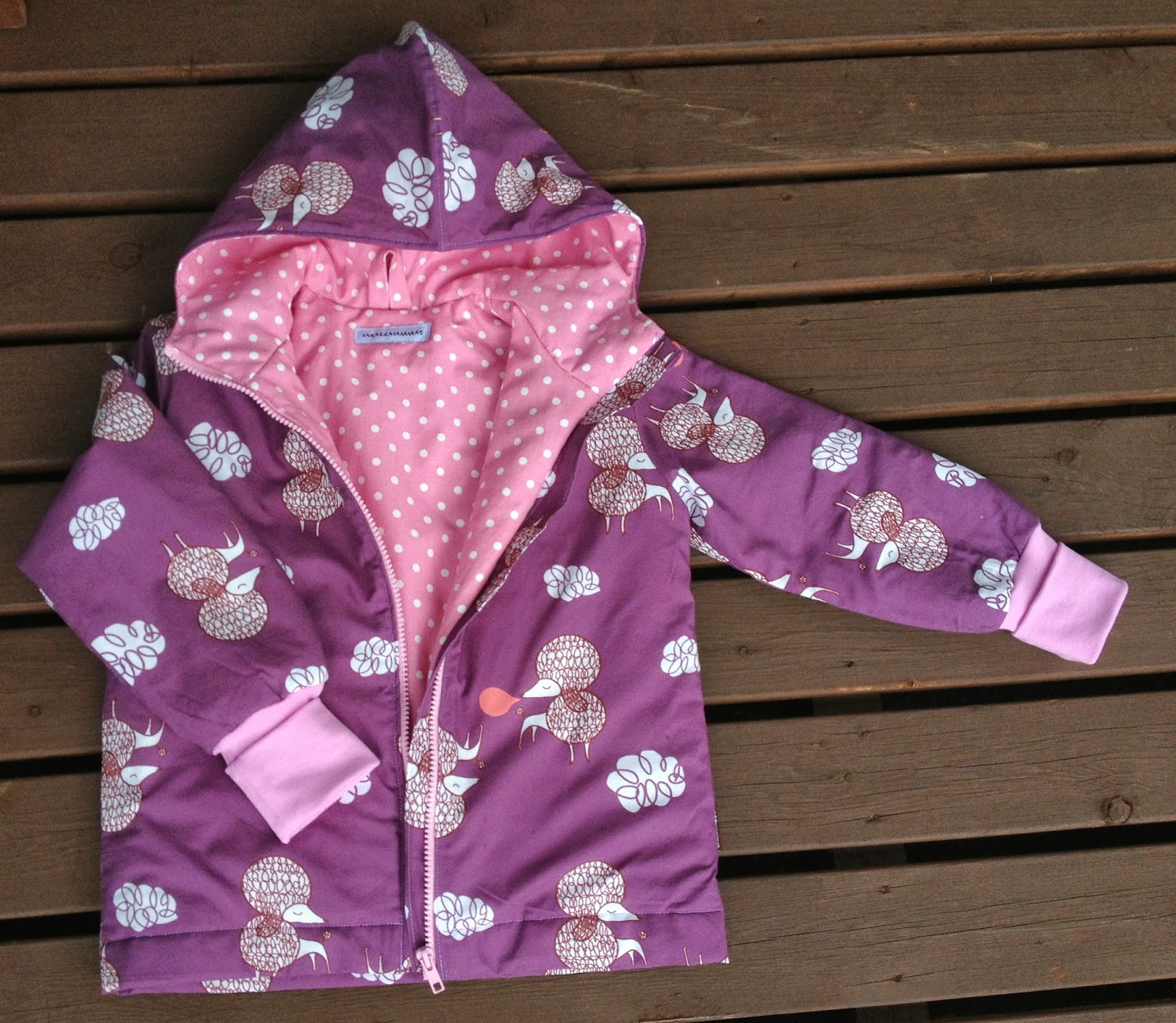 Karkkipinkit velour-Saimit saivat toiseen lahkeeseen taskun pilvivelourista. Löytyi juuri sopivan värinen palanen taskuun. Oktonauttipaita kuvausrekvisiittaa. On ommeltu jo ajat sitten, mutta ei meinaa kelvata, koska siinä on sittenkin väärä hahmo Oktonauteista ;)